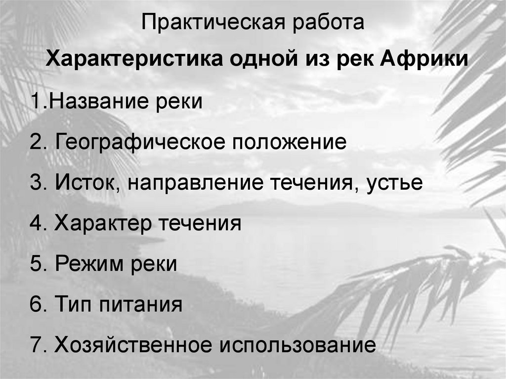 Практическая работаХарактеристика одной из рек Африки