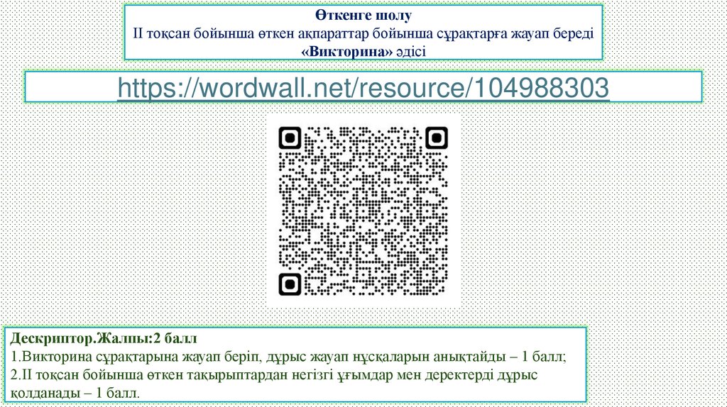 Өткенге шолуІІ тоқсан бойынша өткен ақпараттар бойынша сұрақтарға жауап береді