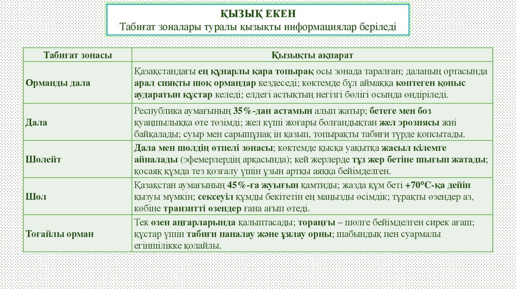 ҚЫЗЫҚ ЕКЕНТабиғат зоналары туралы қызықты информациялар беріледі