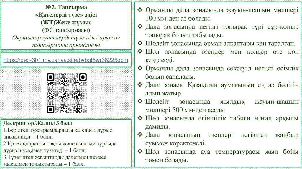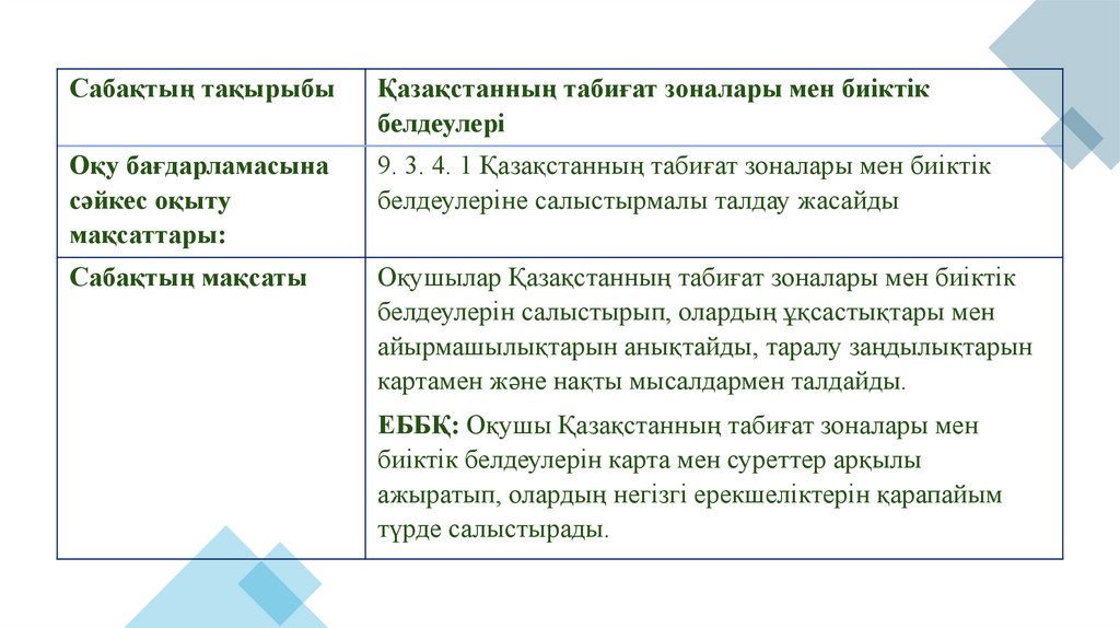 ЕББҚ: Оқушы Қазақстанның табиғат зоналары мен