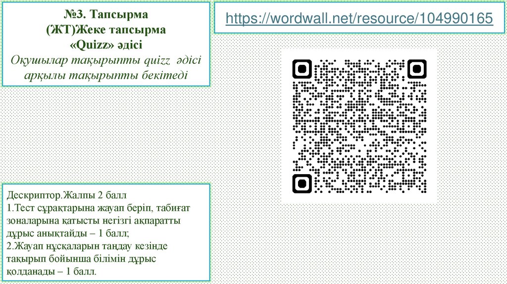 1.Тест сұрақтарына жауап беріп, табиғат