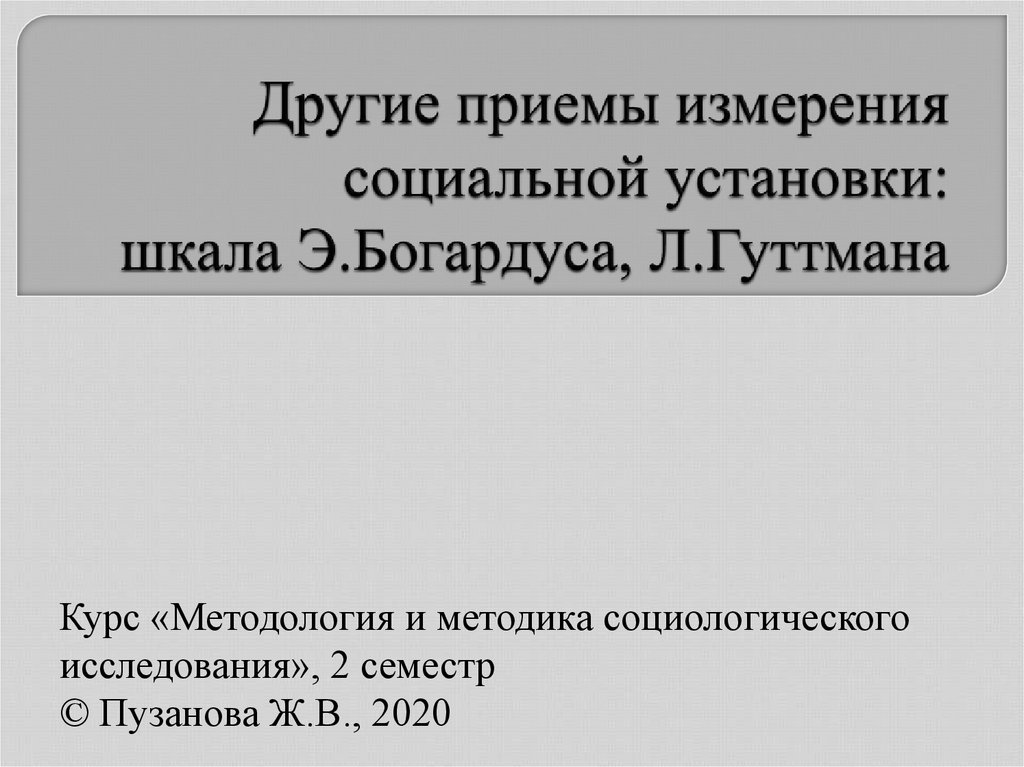 1. Другие приемы измерения социальной установки: шкала Э.Богардуса, Л.Гуттмана