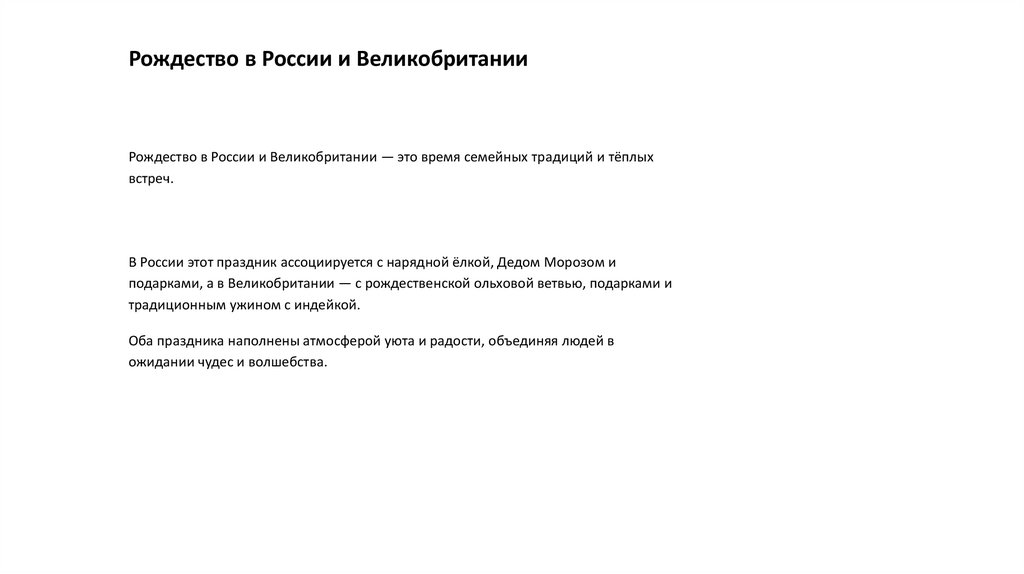 Рождество в России и ВеликобританииРождество в России и Великобритании — это время семейных традиций и тёплых