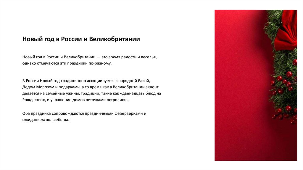 Новый год в России и ВеликобританииНовый год в России и Великобритании — это время радости и веселья,