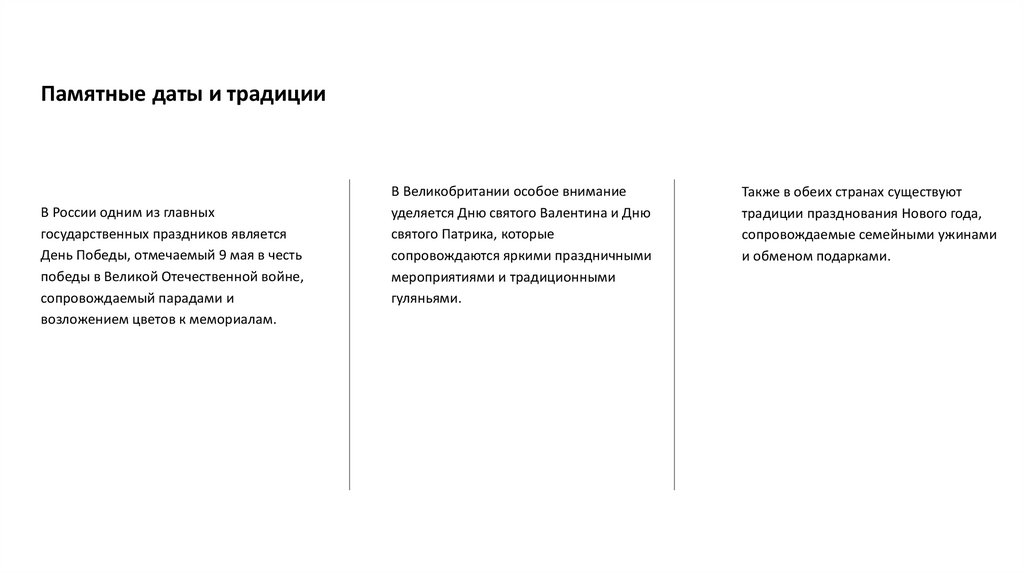 Сравнение праздников России иВеликобритании