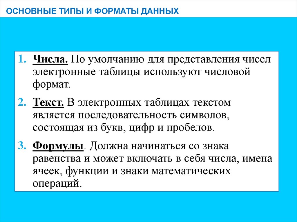 Электронные таблицы сегодня занимаютодно из лидирующих мест в структуре