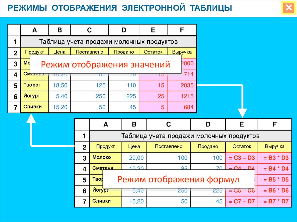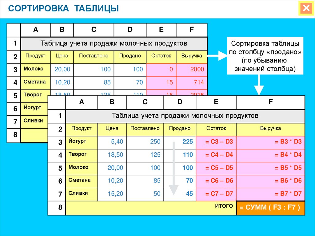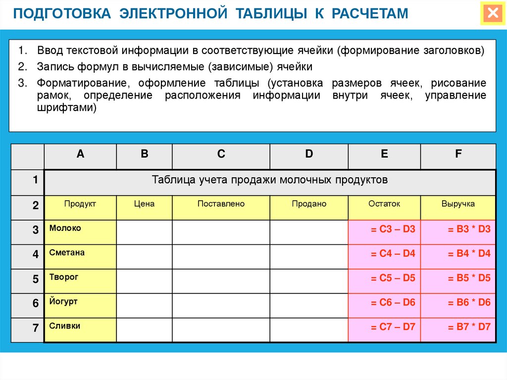 Таблица учета продажи молочных продуктов