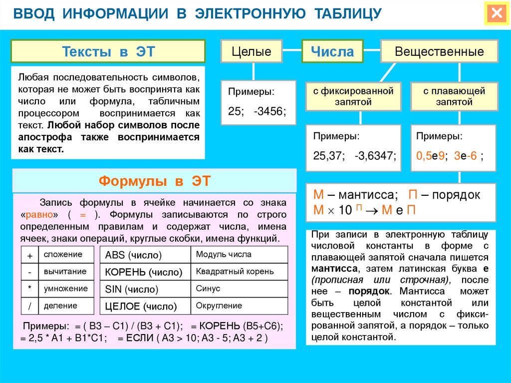 функций и формул;