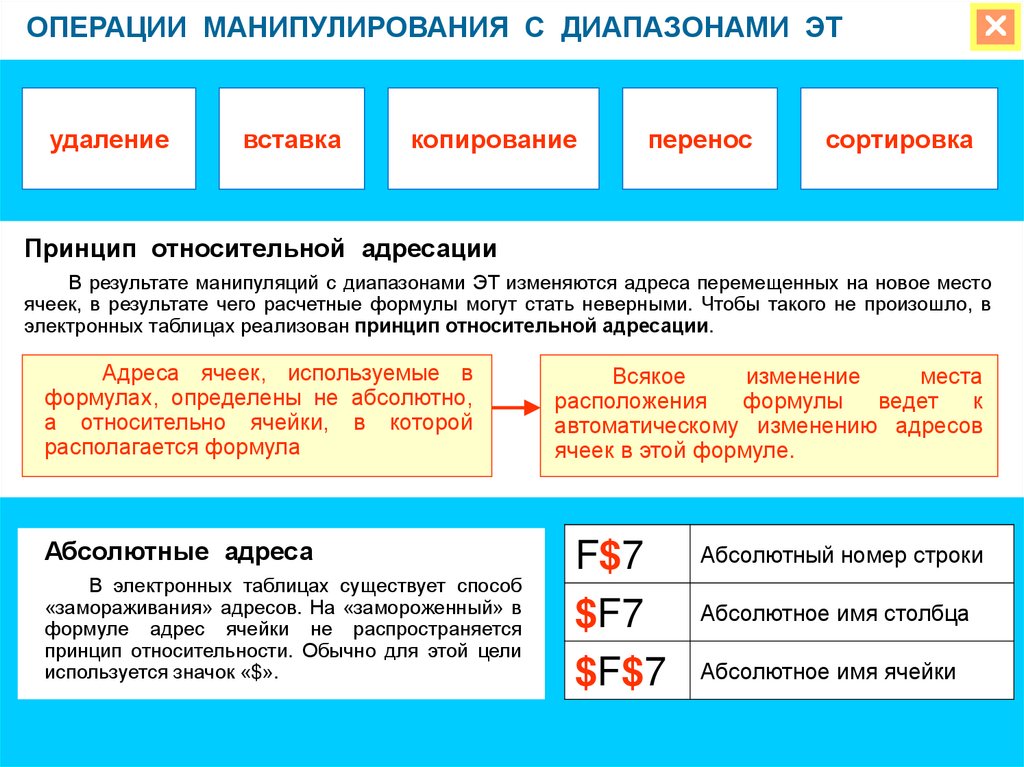 ячейка, относительная и абсолютная адресация.