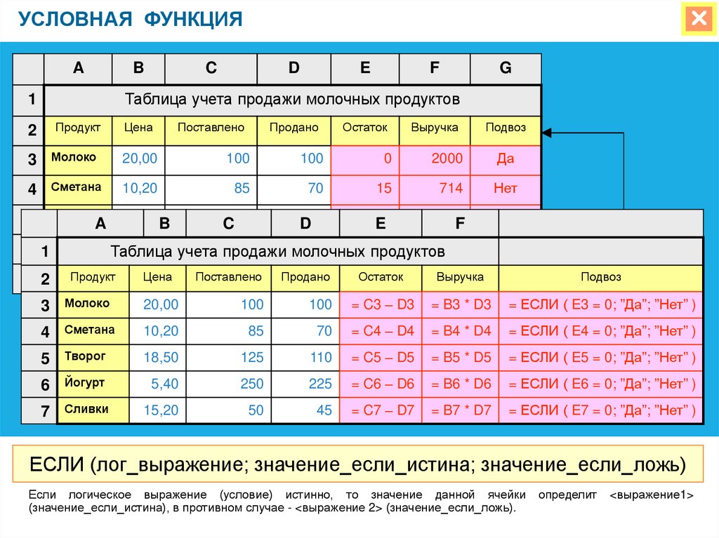 ЕСЛИ (лог_выражение; значение_если_истина; значение_если_ложь)