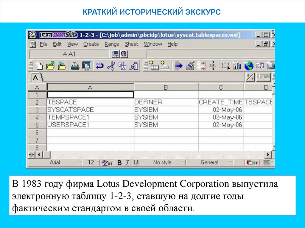 КРАТКИЙ ИСТОРИЧЕСКИЙ ЭКСКУРСВ 1983 году фирма Lotus Development Corporation выпустила