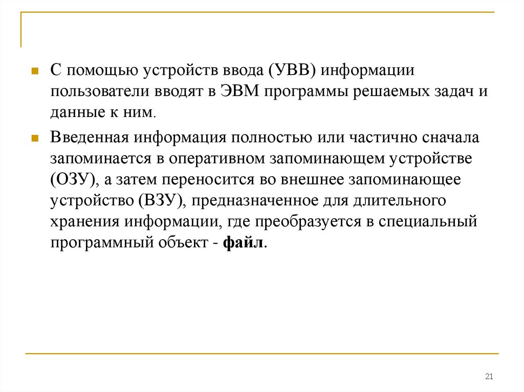Пользователь человек, в интересах которого проводится обработкаданных на ЭВМ.