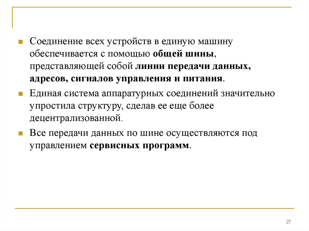 Физически магистраль представляет собоймногопроводную линию с гнездами для подключения