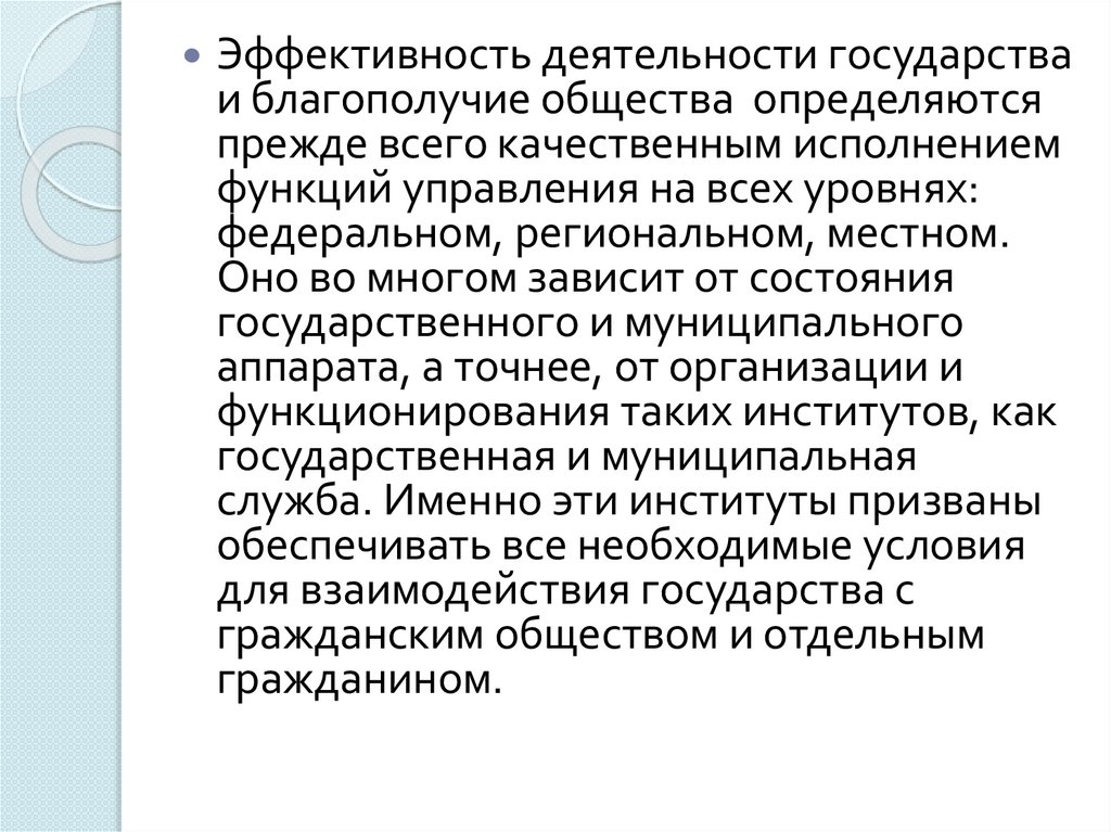Эффективность деятельности государстваи благополучие общества определяются