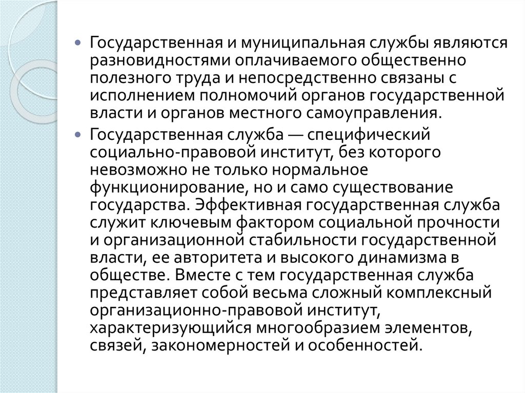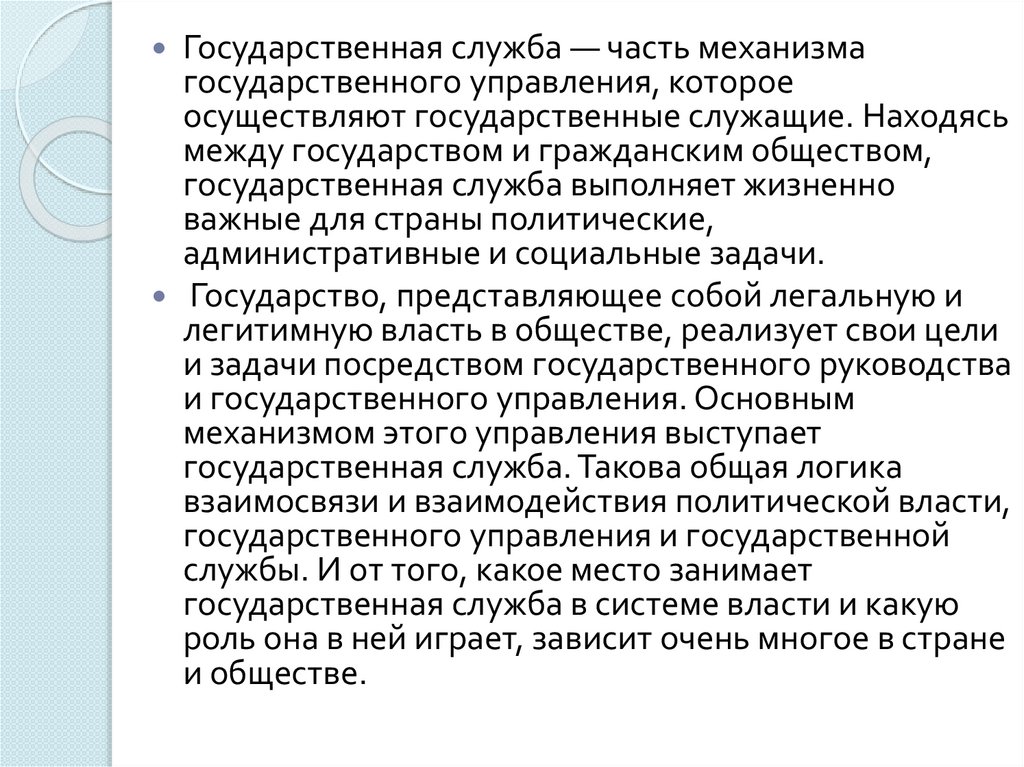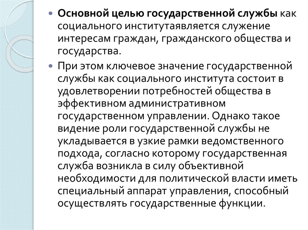 Рассмотрение государственной службы как
