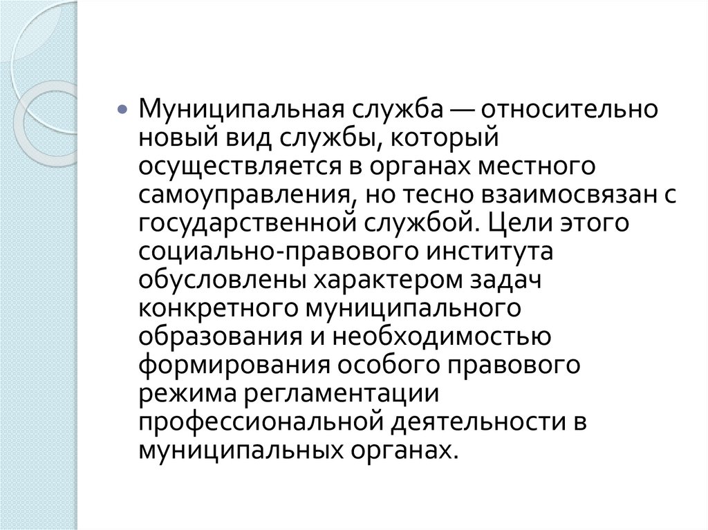 Муниципальная служба — относительноновый вид службы, который