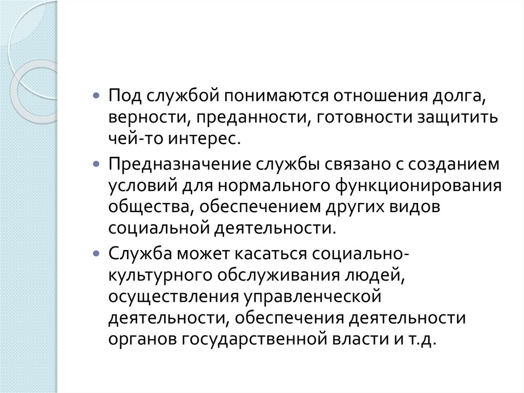 Под службой понимаются отношения долга,верности, преданности, готовности защитить