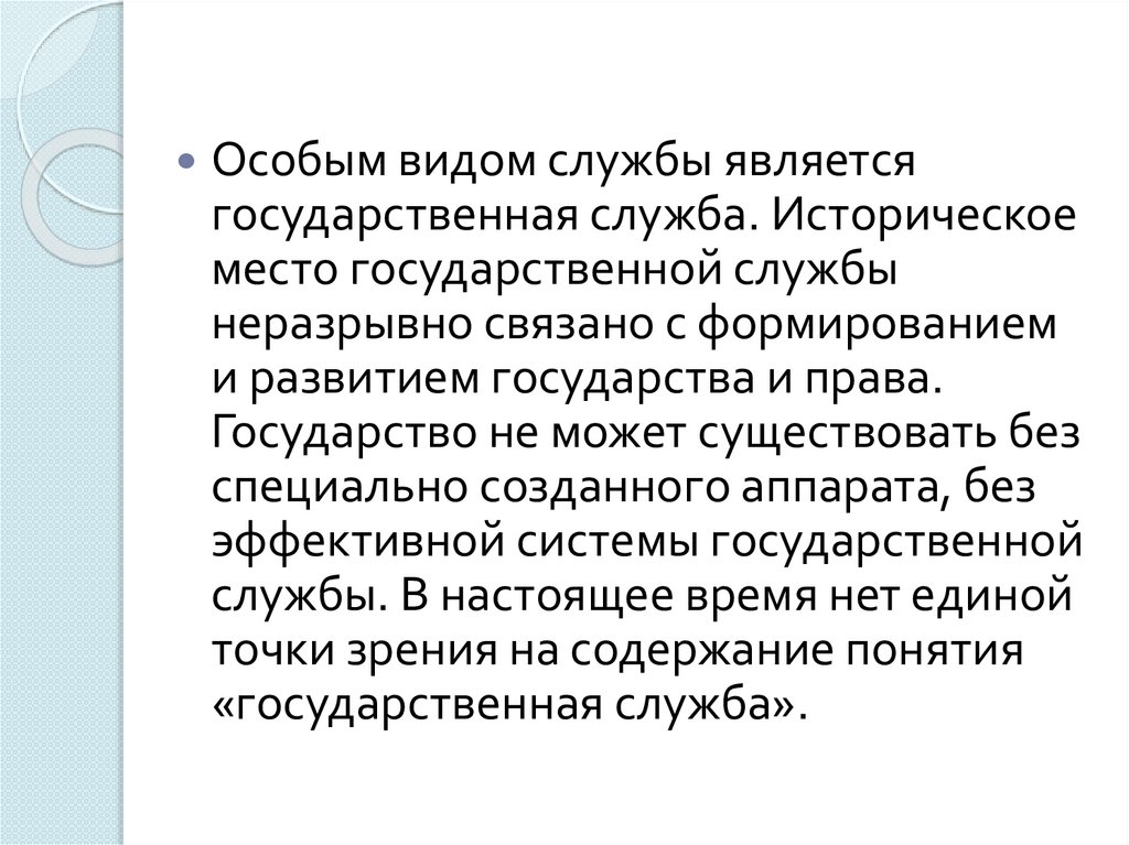Особым видом службы являетсягосударственная служба. Историческое