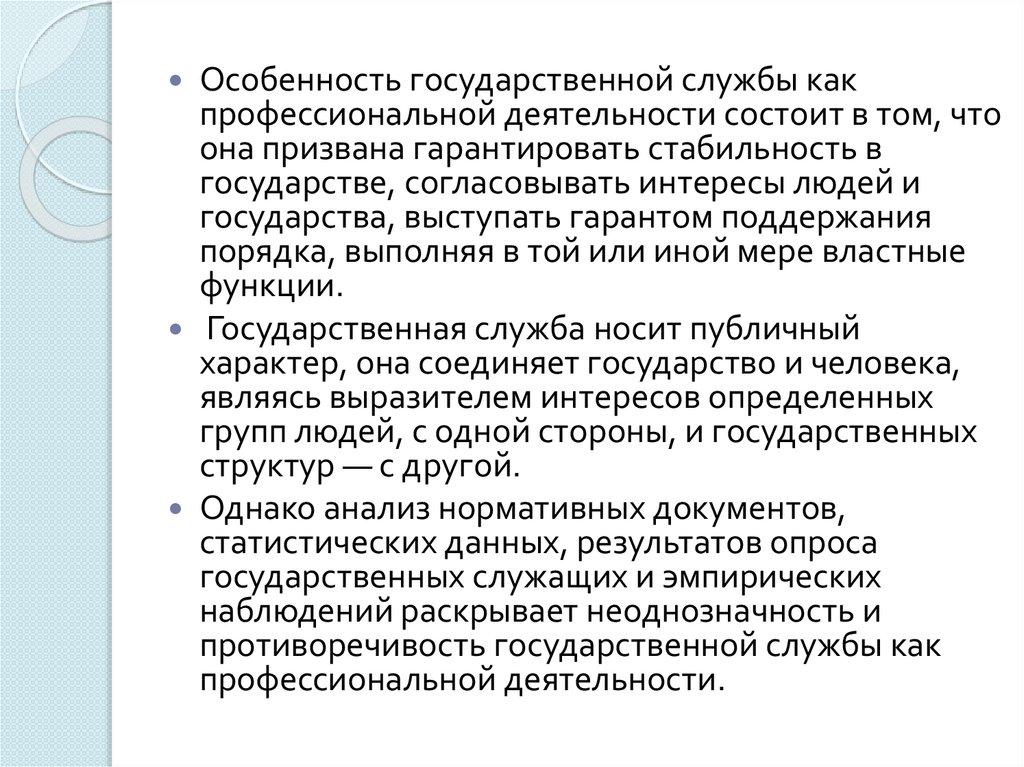 Государственная служба — специфический