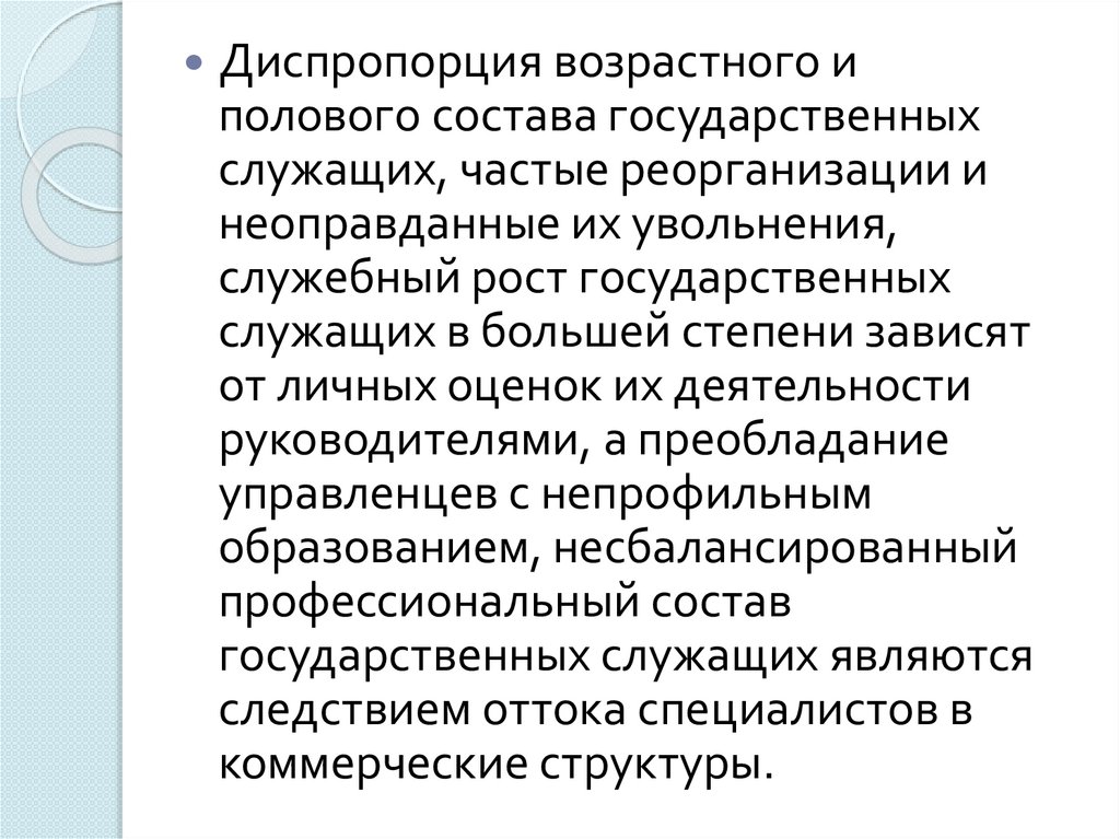 Диспропорция возрастного иполового состава государственных