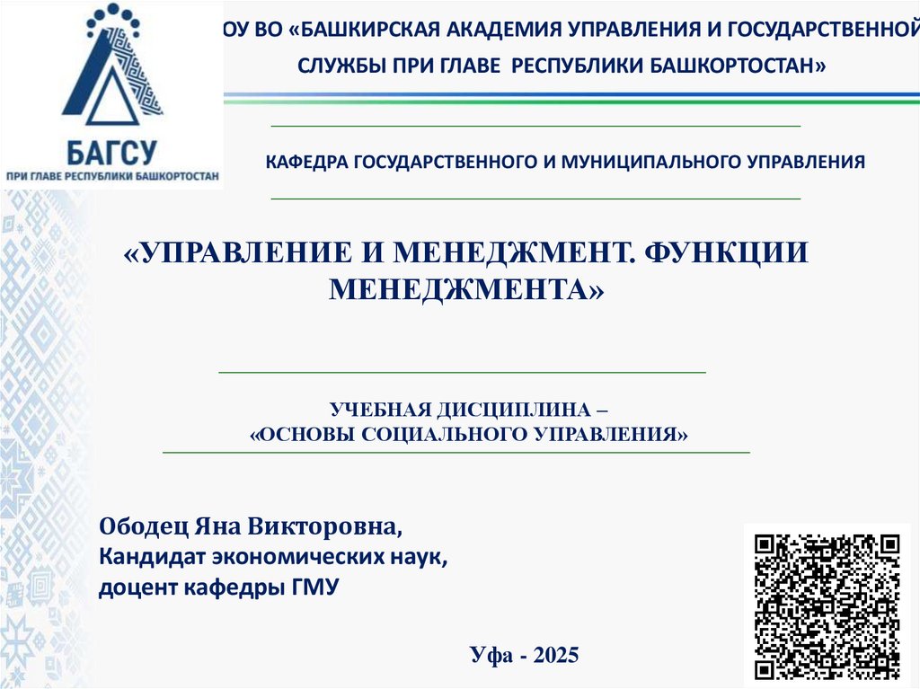 ГБОУ ВО «БАШКИРСКАЯ АКАДЕМИЯ УПРАВЛЕНИЯ И ГОСУДАРСТВЕННОЙСЛУЖБЫ ПРИ ГЛАВЕ РЕСПУБЛИКИ БАШКОРТОСТАН»