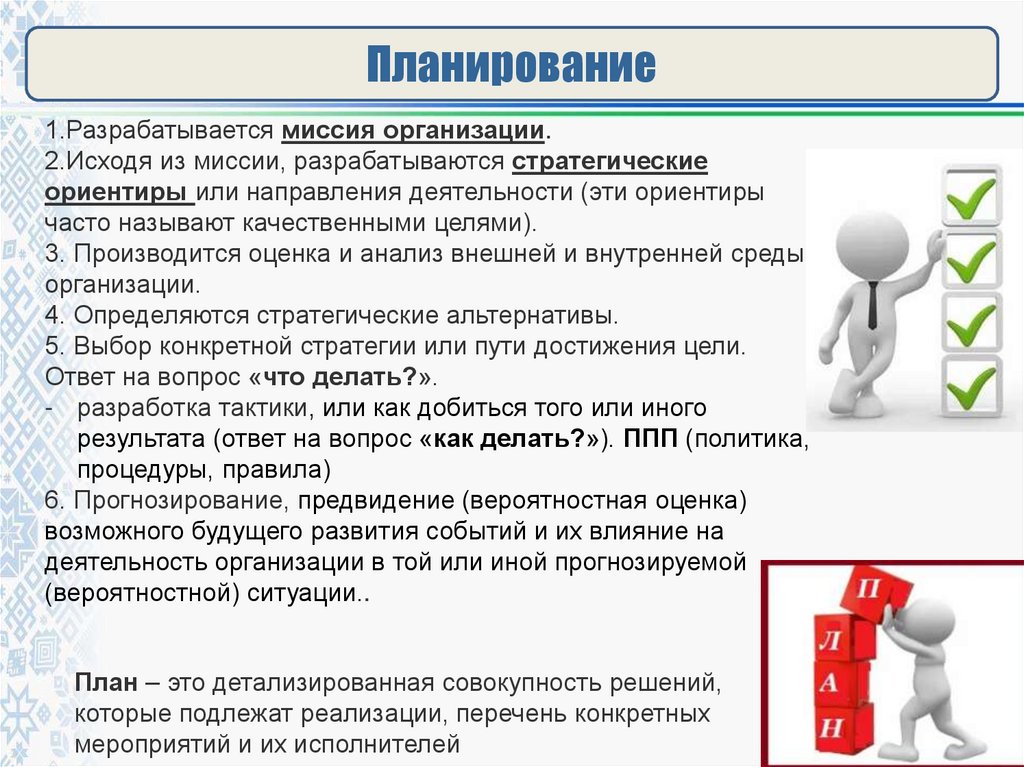 результата (ответ на вопрос «как делать?»). ППП (политика,