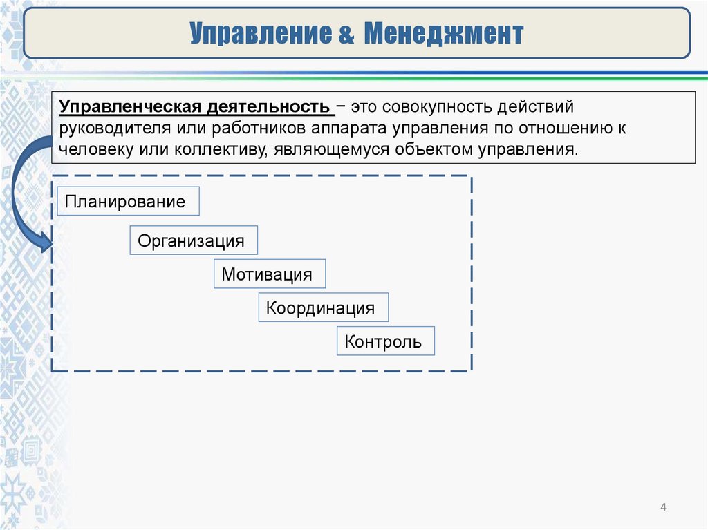 Управление & МенеджментУправленческая деятельность − это совокупность действий