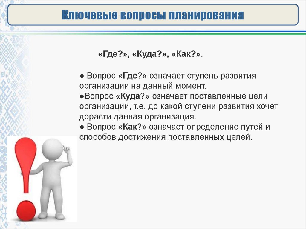 Ключевые вопросы планирования«Где?», «Куда?», «Как?».