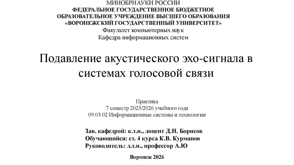 Разработать и исследовать алгоритм подавленияакустического эха в системах голосовой связи на основе
