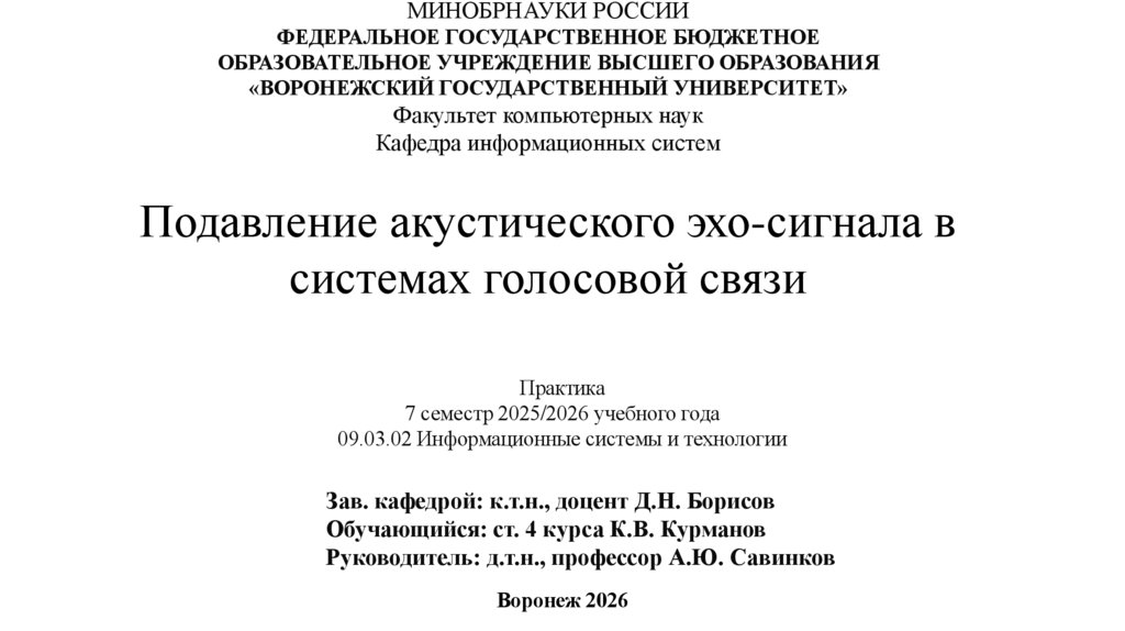 Подавление акустического эха в системах голосовой связиявляется важной задачей цифровой обработки сигналов,