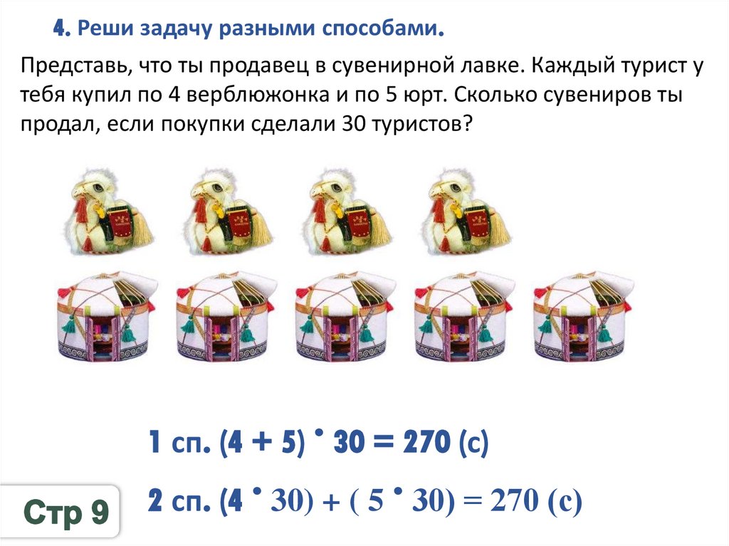4. Реши задачу разными способами.Представь, что ты продавец в сувенирной лавке. Каждый турист у