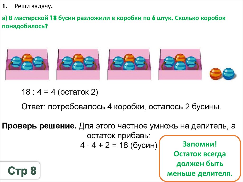 Ты научишься выполнять деление с остатком на однозначноечисло.