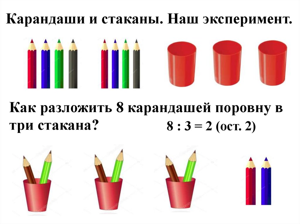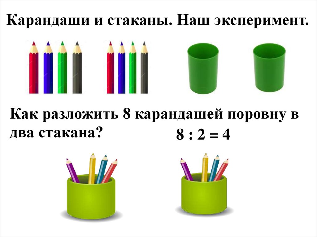 Карандаши и стаканы. Наш эксперимент.Как разложить 8 карандашей поровну в
