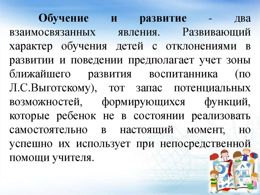 в обучении, с недостатками в умственном и