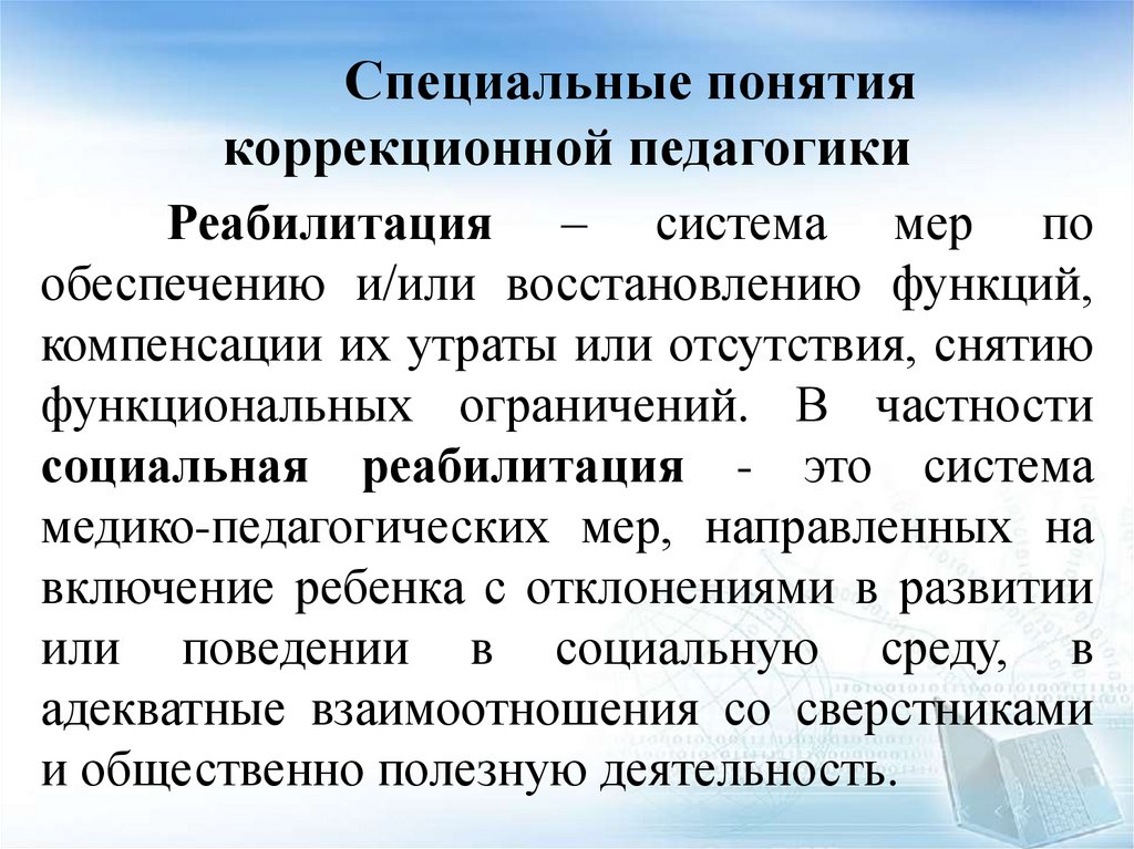 Специальные понятия коррекционнойпедагогики