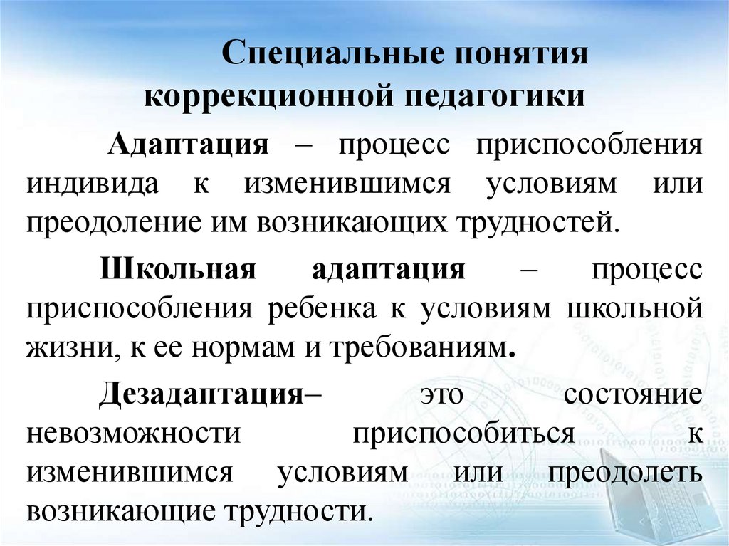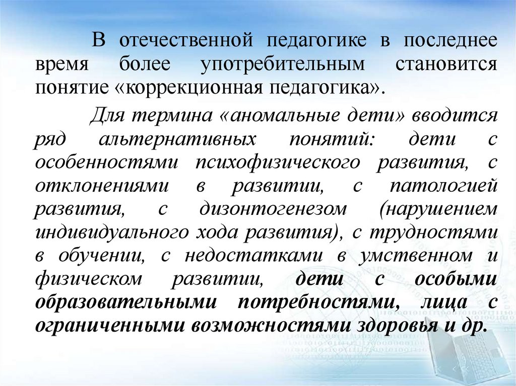 Специальные понятиякоррекционной педагогики