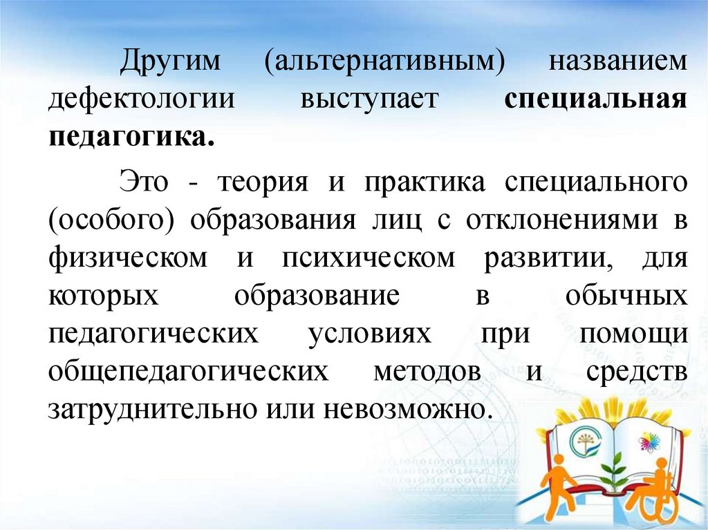 Другим (альтернативным) названиемдефектологии