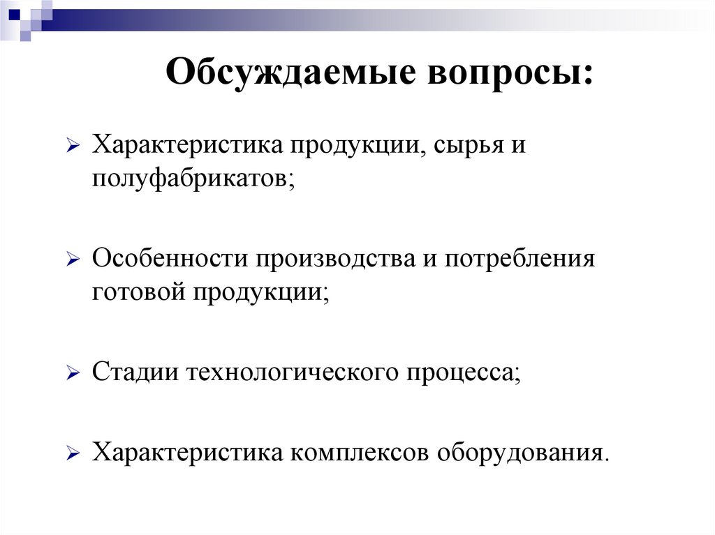 Обсуждаемые вопросы:Характеристика продукции, сырья и