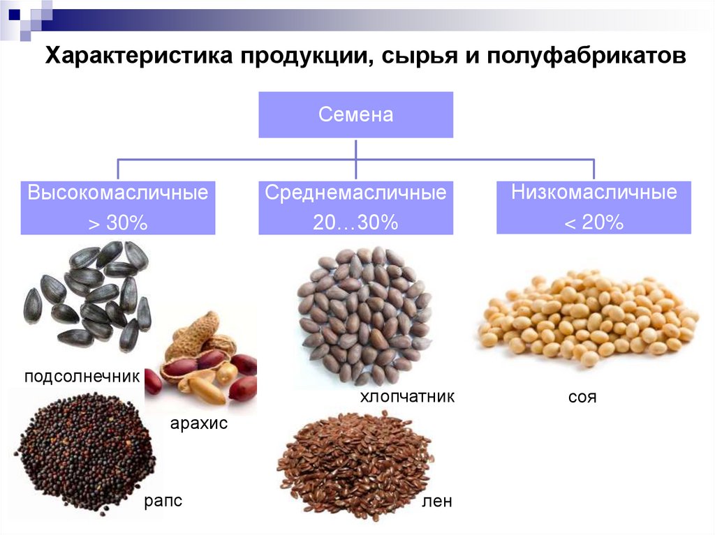 Характеристика продукции, сырья и полуфабрикатовСемена