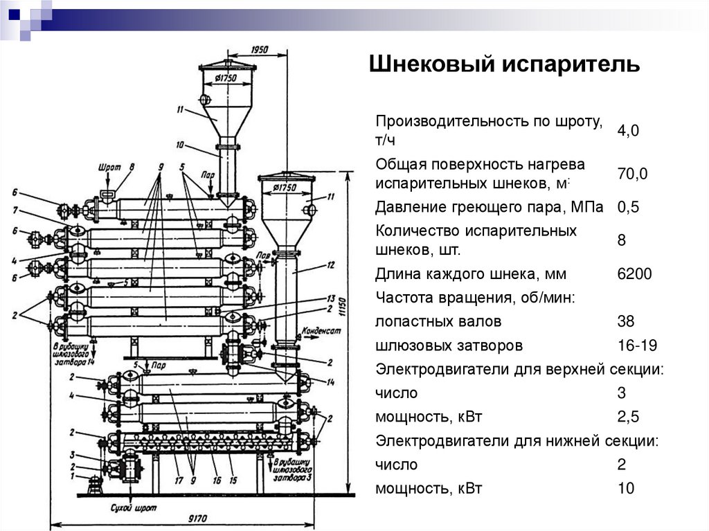 Шнековый испарительПроизводительность по шроту,