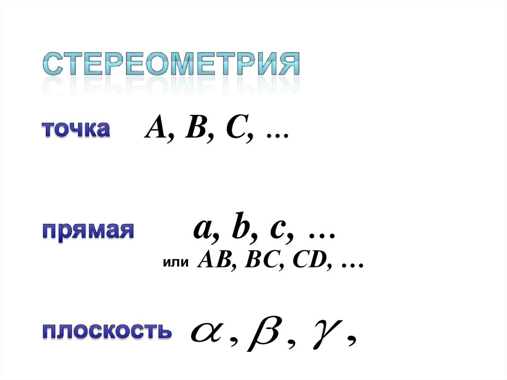 • Плоскость – грань• Прямая – ребро