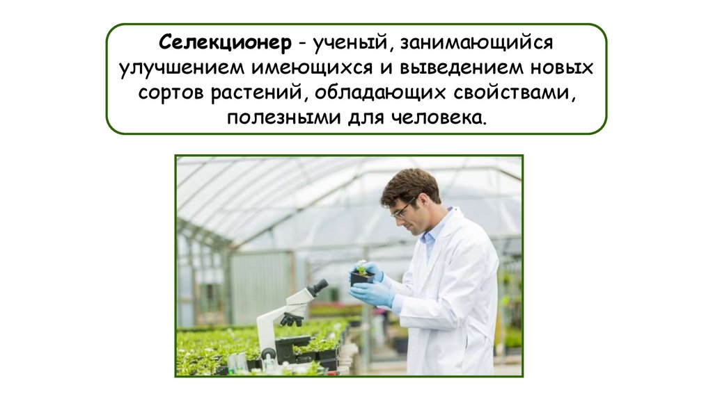 Селекционер - ученый, занимающийсяулучшением имеющихся и выведением новых