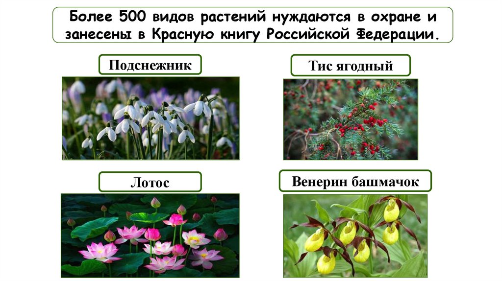 Более 500 видов растений нуждаются в охране изанесены в Красную книгу Российской Федерации.