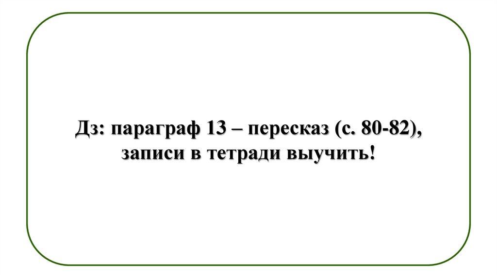 Дз: параграф 13 – пересказ (с. 80-82),записи в тетради выучить!