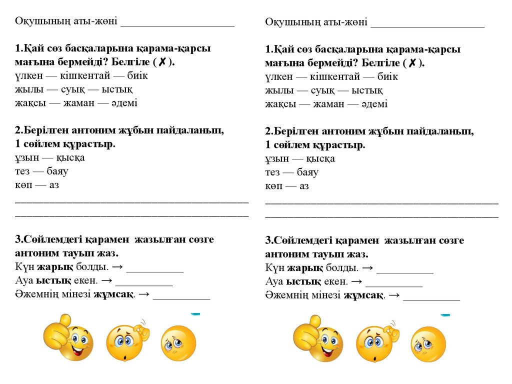 Оқушының аты-жөні ____________________Оқушының аты-жөні ____________________