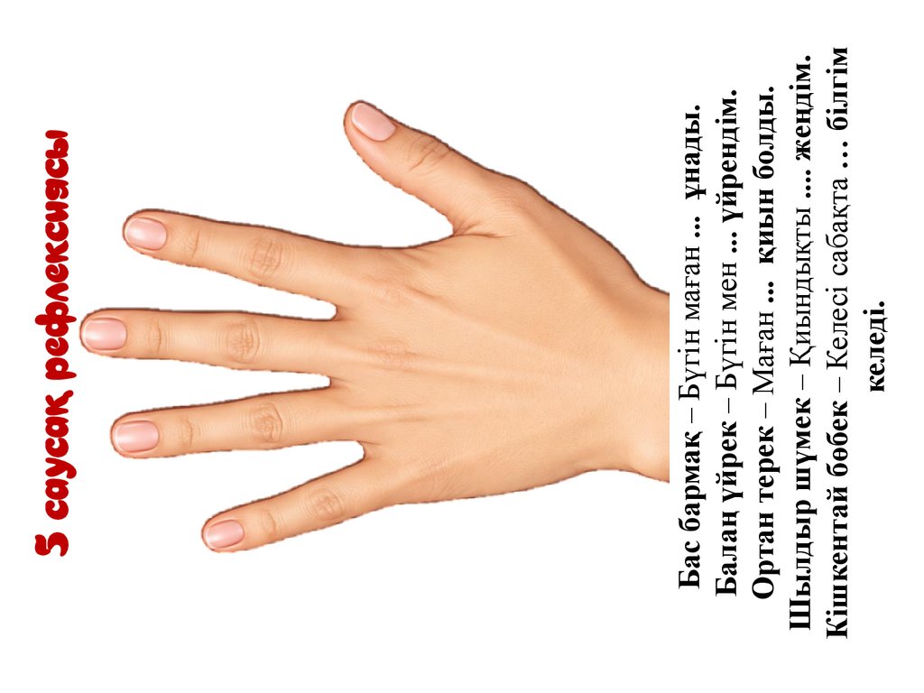 Бас бармақ – Бүгін маған ... ұнады.Балаң үйрек – Бүгін мен ... үйрендім.