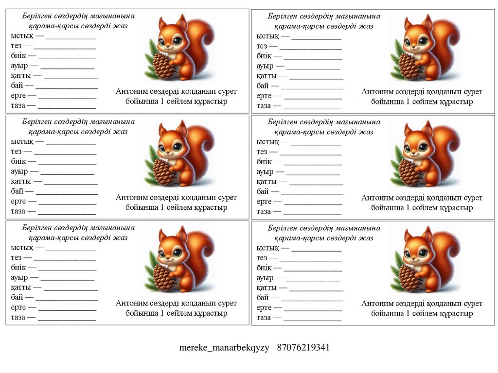 Антоним сөздерді қолданып сурет