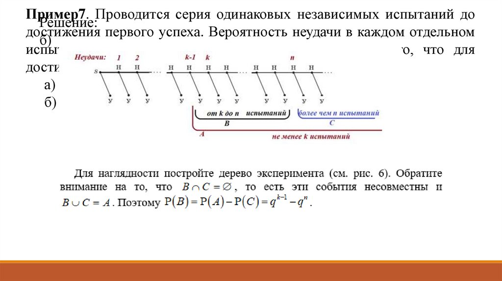 Пример7. Проводится серия одинаковых независимых испытаний доРешение: