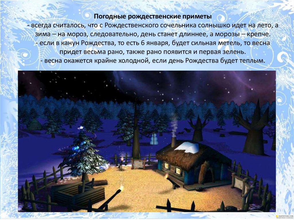Погодные рождественские приметы- всегда считалось, что с Рождественского сочельника солнышко идет на лето, а