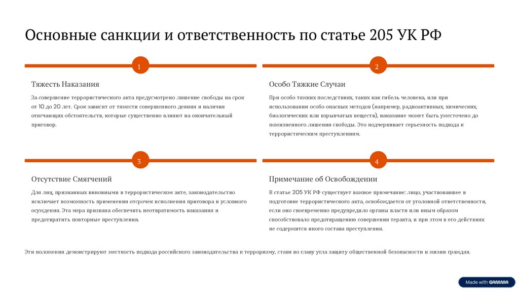 Эти положения демонстрируют жесткость подхода российского законодательства к терроризму, ставя во главу угла защиту общественной безопасности и жизни граждан.